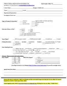 Printing Services ESTIMATE REQUEST Form